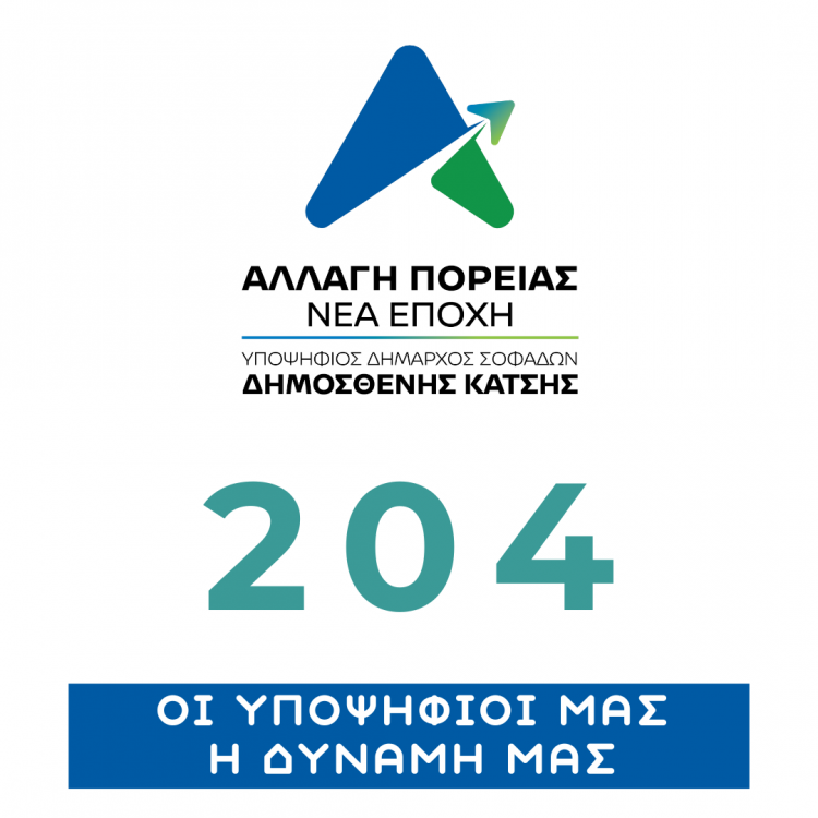 Η «ΑΛΛΑΓΗ ΠΟΡΕΙΑΣ / ΝΕΑ ΕΠΟΧΗ» στη διεκδίκηση του Δήμου Σοφάδων με επικεφαλής τον Υποψήφιο Δήμαρχο κύριο Δημοσθένη Κατσή, σας ανακοινώνει τη συνεργασία της με 203 Υποψηφίους Συμβούλους.
