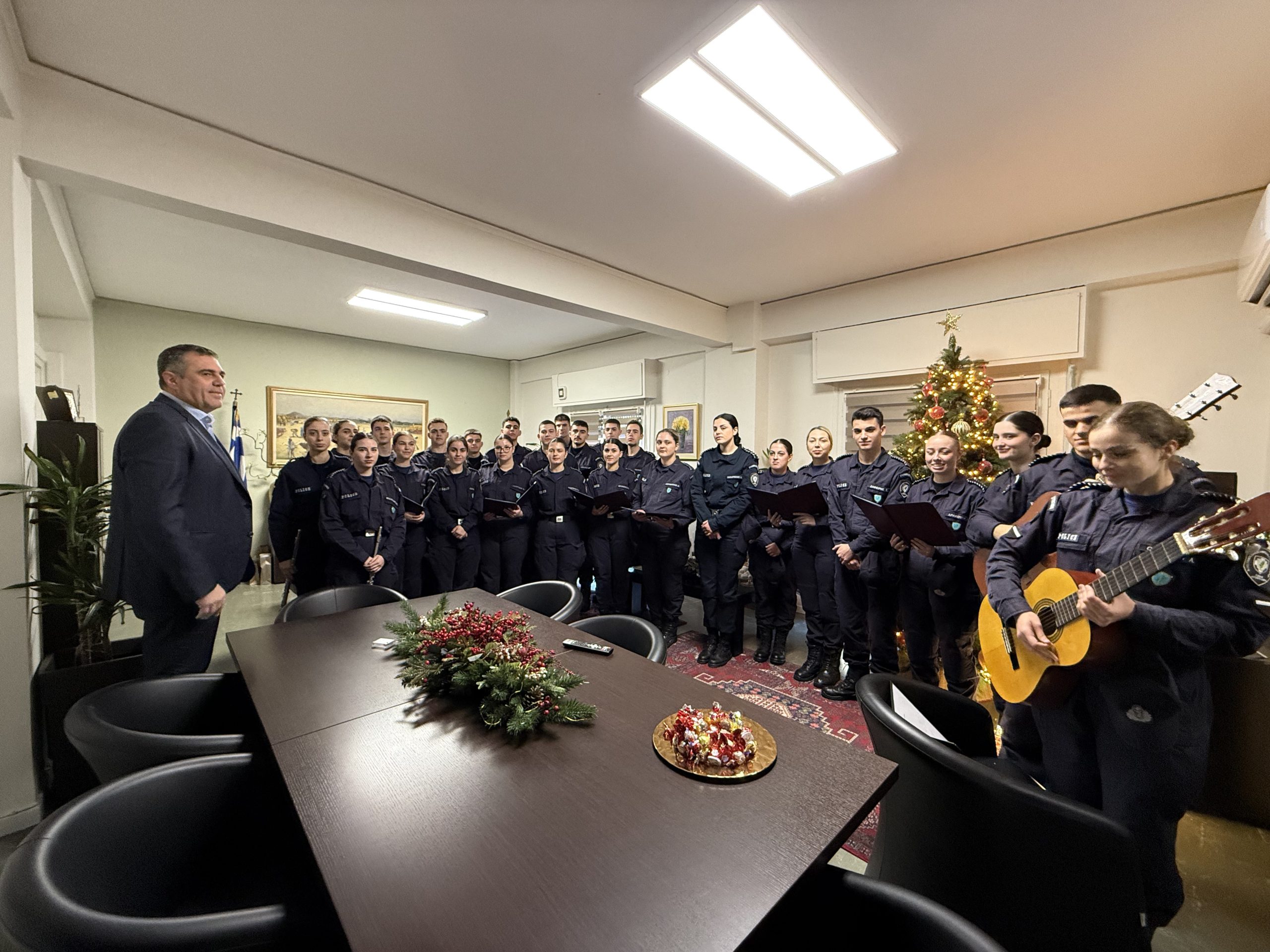 Η συνάντηση ολοκληρώθηκε με ανταλλαγή ευχών για καλές γιορτές, υγεία και καλή σταδιοδρομία στους αυριανούς λειτουργούς της δημόσιας ασφάλειας.