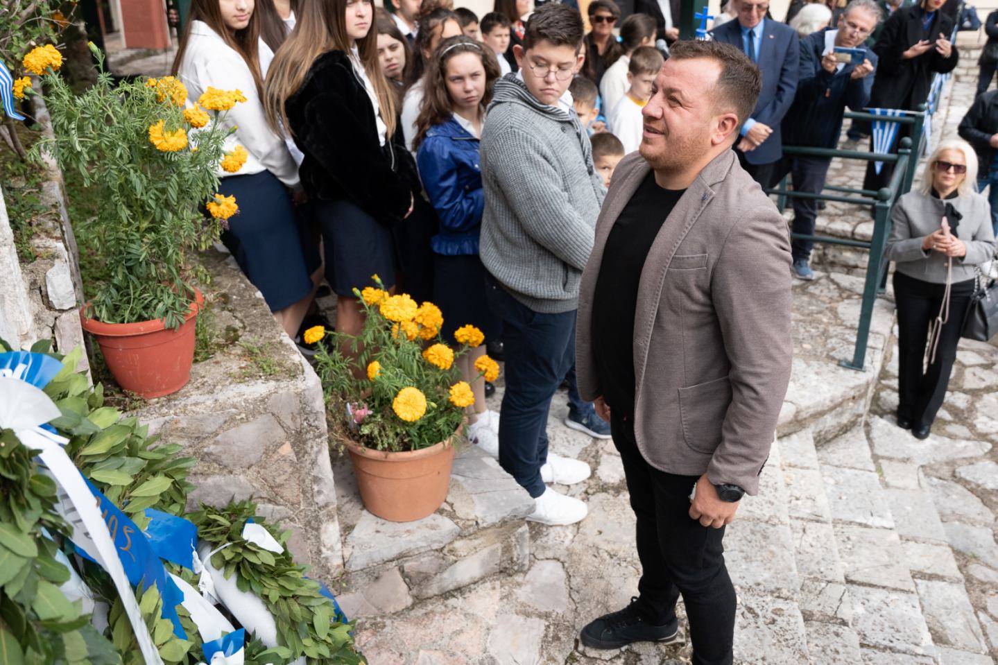 Στους χαιρετισμούς τους ο Περιφερειάρχης κ. Δημήτρης Κουρέτας και ο Δήμαρχος κ. Ανδρέας Στεργίου, εξήραν την τεράστια σημασία της Επετείου του «ΟΧΙ». Αμφότεροι χαρακτήρισαν την 28η Οκτωβρίου, ημέρα ορόσημο για την επιβίωση και πορεία του Ελληνικού Έθνους στη μεταπολεμική εποχή. Όπως τονίστηκε, πρόκειται για «χρυσή σελίδα» στη μακραίωνη ιστορία μας που καταδεικνύει την ενότητα, τον ηρωισμό και την αυταπάρνηση που δείχνει πάντα ο λαός μας όταν απειλείται η εθνική κυριαρχία και η εδαφική ακεραιότητα της Πατρίδας. Μια κρίσιμη απόφαση ζωής η θανάτου, παρόντος και μέλλοντος, που αποτελεί διαχρονικά φωτεινό παράδειγμα για τις μελλοντικές γενιές και τη Χώρα.