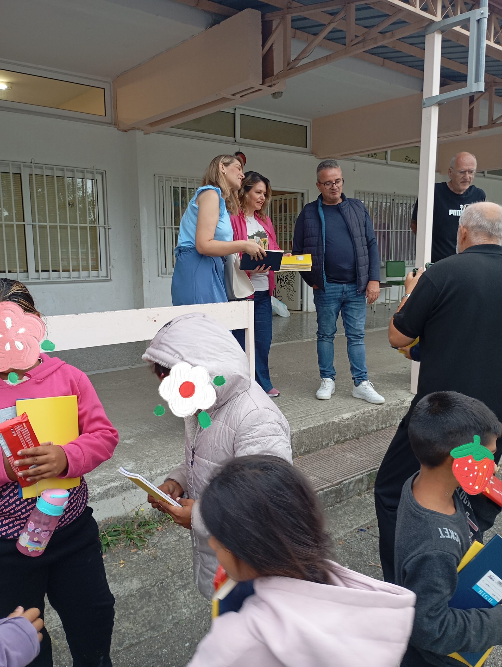 Η κα Μπαζή, αφού συνομίλησε με τα παιδιά και το εκπαιδευτικό προσωπικό σχετικά με τη φοίτησή τους και την τακτική συμμετοχή τους στο σχολείο, μοίρασε γραφική ύλη, διάφορα παζλ, παραμύθια και γλυκίσματα στα παιδιά, προσφορά από το Κοινωνικό Παντοπωλείο του Δήμου Καρδίτσας, εκφράζοντας τις πιο θερμές ευχές της για “Καλή Σχολική Χρονιά”. Οι μικροί μαθητές ανταποκρίθηκαν με ιδιαίτερο ενθουσιασμό και χαρά.