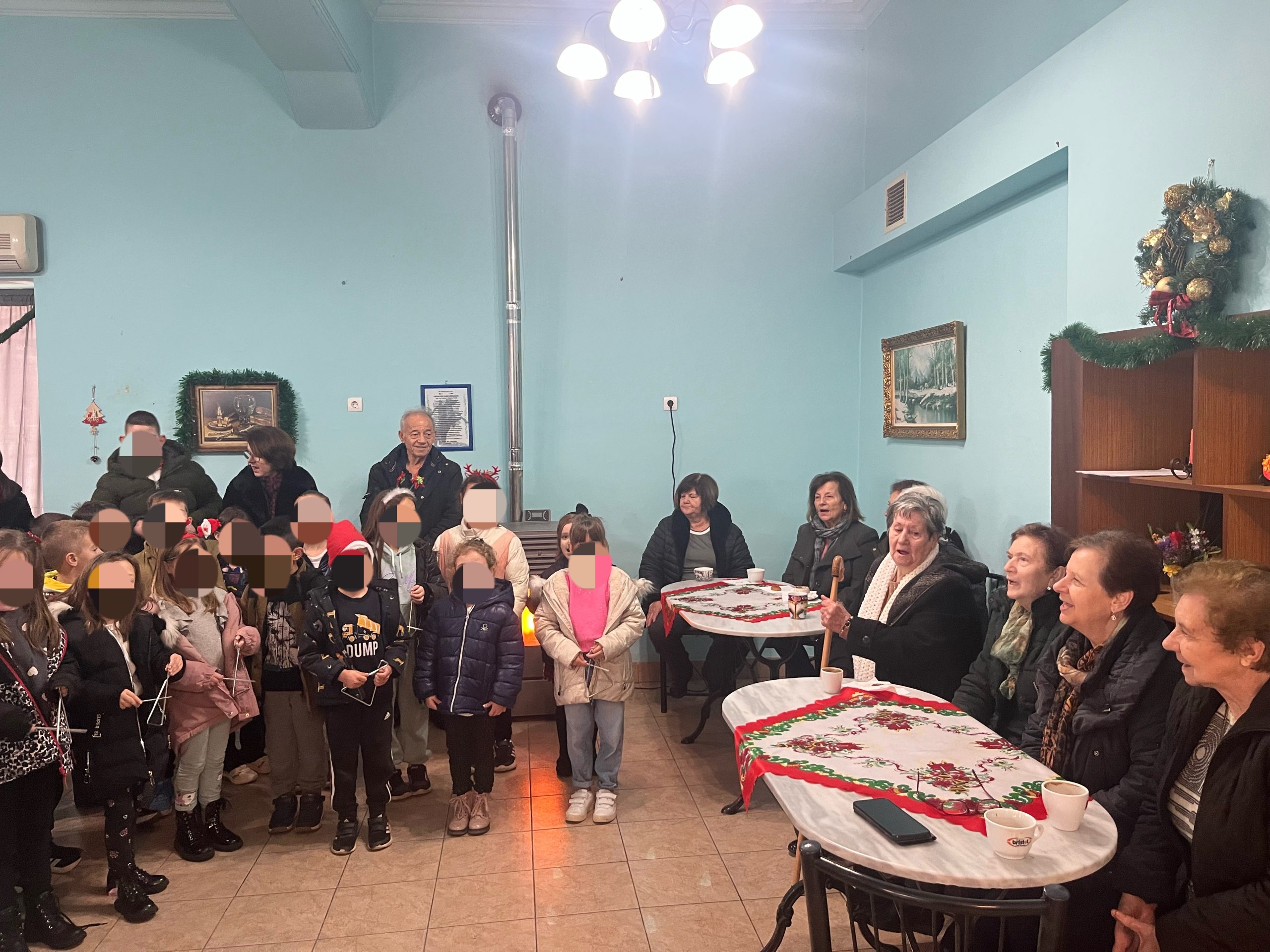 Τα παιδιά τραγούδησαν εορταστικά τραγούδια και κάλαντα, δημιουργώντας μια συγκινητική ατμόσφαιρα και μεταφέροντας το πνεύμα των Χριστουγέννων και της αγάπης στους φιλοξενούμενους των ΚΑΠΗ, οι οποίοι υποδέχθηκαν με ενθουσιασμό αυτή την όμορφη επίσκεψη.