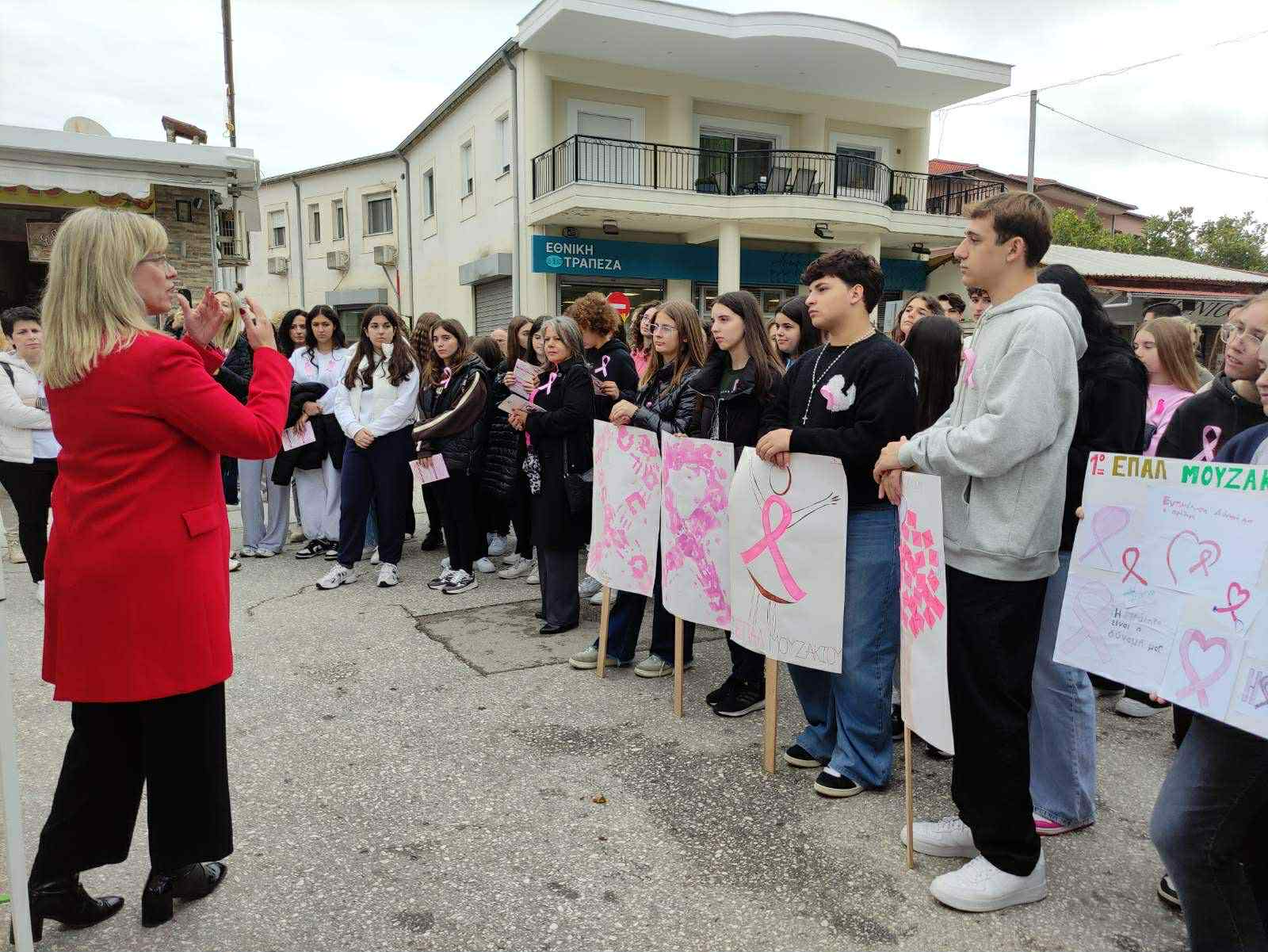 Πολίτες, μαθητές και εκπρόσωποι φορέων συμμετείχαν ενεργά, φορώντας ροζ φιογκάκια, το διεθνές σύμβολο κατά του καρκίνου του μαστού, ενώ οι μαθητές κρατούσαν ροζ μπαλόνια και πλακάτ με μηνύματα πρόληψης, ελπίδας και υποστήριξης. Οι δρόμοι του Μουζακίου «ντύθηκαν» ροζ, μεταφέροντας δυναμικά το μήνυμα ότι η πρόληψη σώζει ζωές.