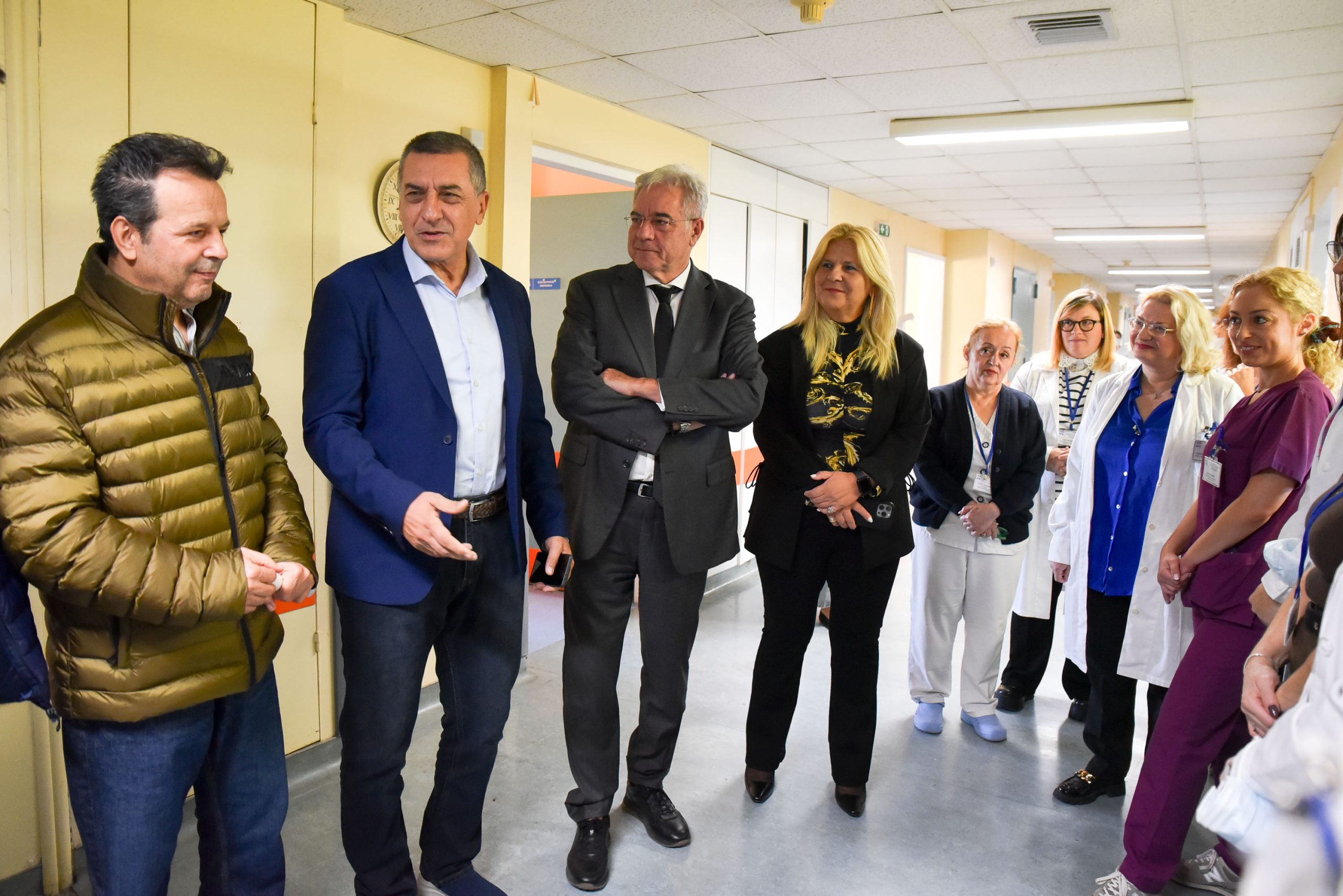 Την τρίτη κατά σειρά επίσκεψή του στο Πανεπιστημιακό Γενικό Νοσοκομείο Λάρισας πραγματοποίησε ο Περιφερειάρχης Θεσσαλίας Δημήτρης Κουρέτας, στο πλαίσιο της παρακολούθησης των έργων που χρηματοδοτεί η Περιφέρεια μέσω του Περιφερειακού Προγράμματος Ανάπτυξης (ΠΠΑ) 2021–2025 (Εθνικό Πρόγραμμα Δημοσίων Επενδύσεων), συνολικού προϋπολογισμού 5,8 εκατομμυρίων ευρώ. Ο κ. Κουρέτας επισκέφθηκε τη Δερματολογική και την Αιματολογική Κλινική του Νοσοκομείου, όπου υλοποιούνται έργα εκσυγχρονισμού που ενισχύουν ουσιαστικά τον δημόσιο χαρακτήρα της υγείας και βελτιώνουν τις παρεχόμενες υπηρεσίες στους πολίτες της Θεσσαλίας.
