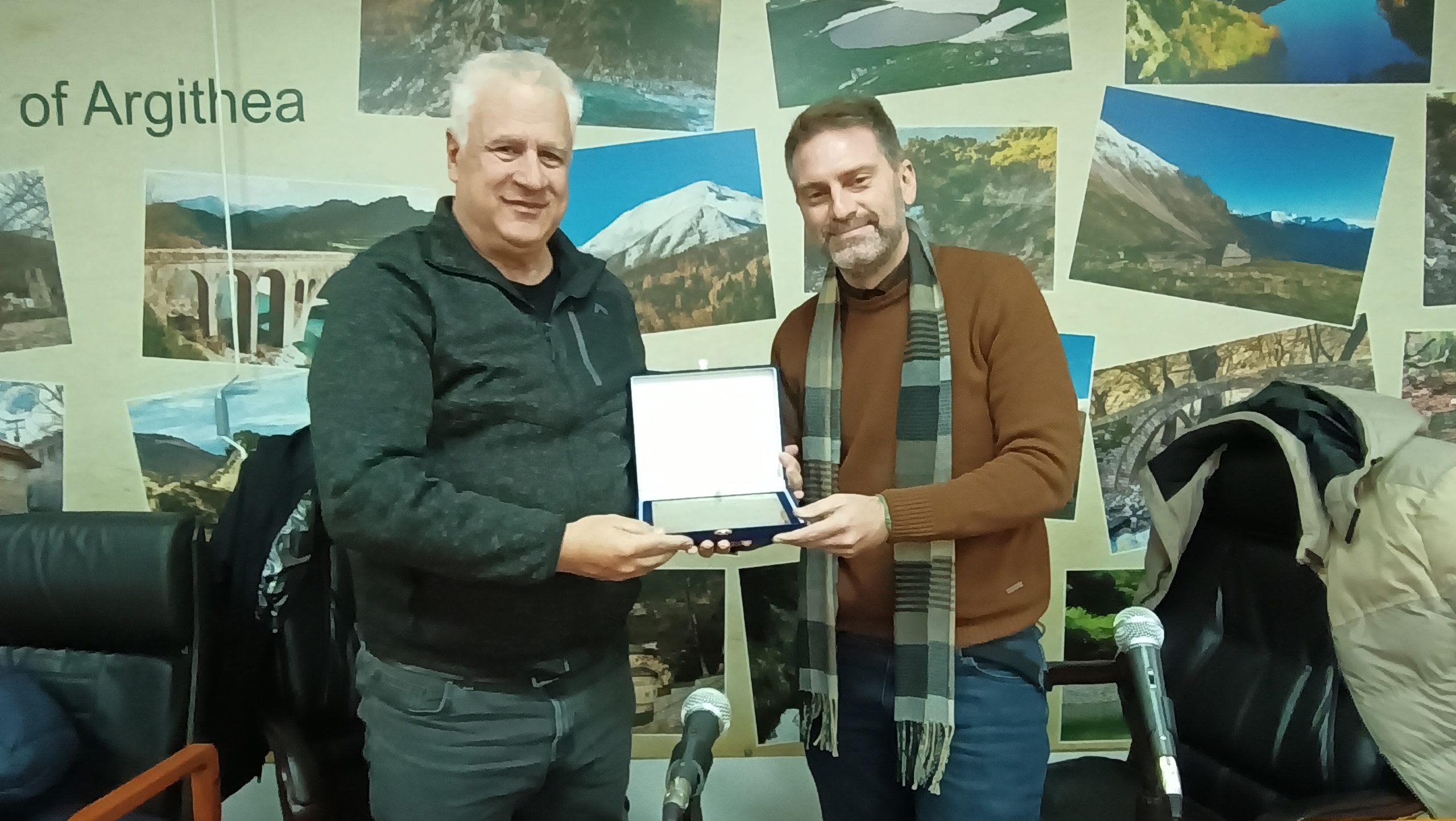 Στο πλαίσιο της συνάντησης, ο Δήμαρχος προσέφερε στον κ. Καλιαμπάκο αναμνηστική πλακέτα, ως ένδειξη ευγνωμοσύνης για τη σημαντική επιστημονική και κοινωνική προσπάθεια που επιχειρείται για τον Δήμο Αργιθέας, ενώ παρέδωσε στην αποστολή το έργο του εκπαιδευτικού, ιστορικού ερευνητή και συγγραφέα Ξενοφώντα Κουτή «Απ’ την Αθαμανία στα Άγραφα: Η ιστορία της Αργιθέας», ως πολύτιμο ιστορικό υπόβαθρο για την έρευνα των φοιτητών.
