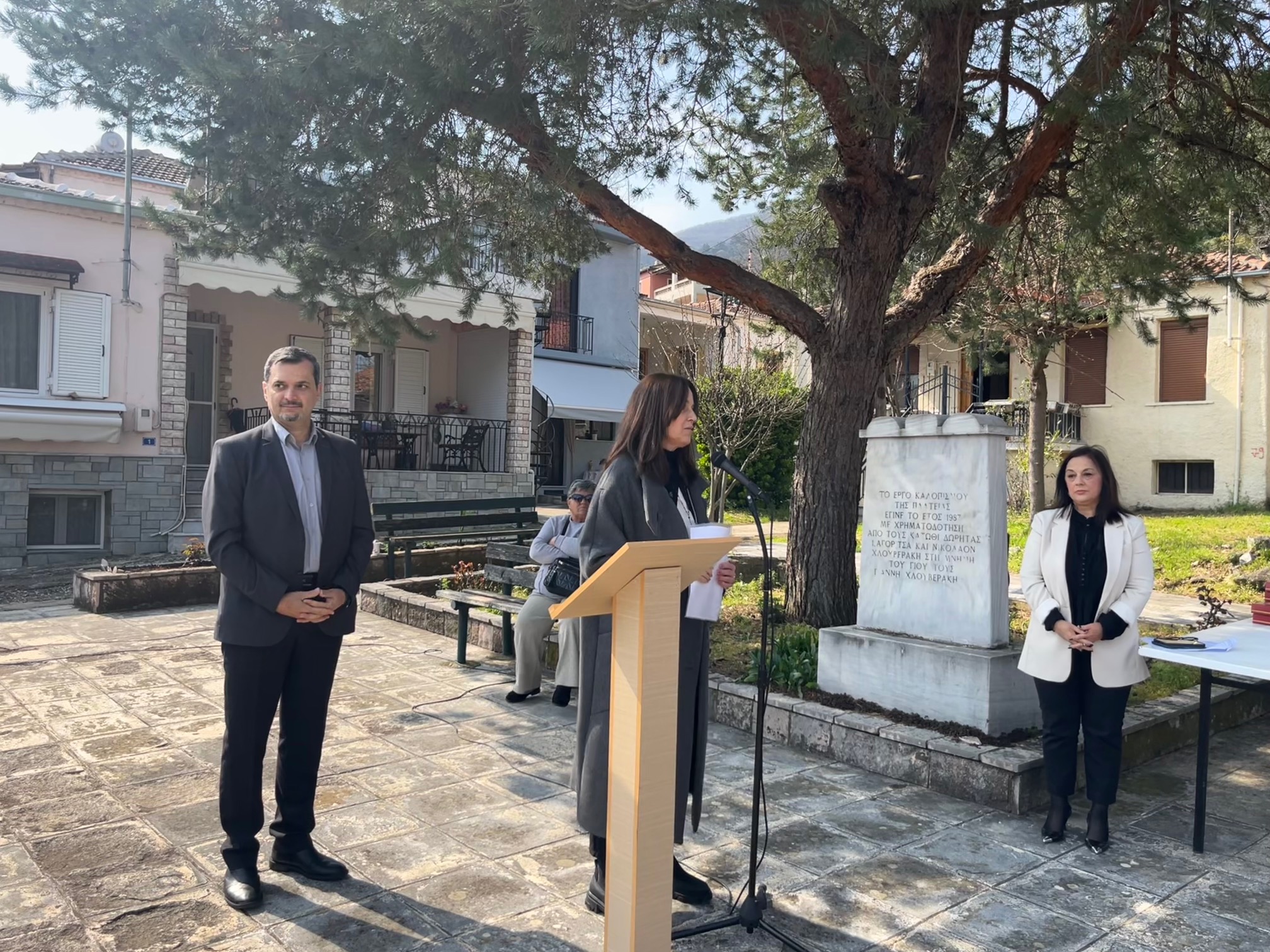 Αφού τελέστηκε Επιμνημόσυνη Δέηση από τον εφημέριο του Ι.Ν. Κοιμήσεως Θεοτόκου Μουζακίου π. Λάζαρο Κουτσογιάννη, αναγνώστηκε η απόφαση Ονοματοδοσίας από την Πρόεδρο Δημοτικού Συμβουλίου, κ.Φανή Δασκάλου.