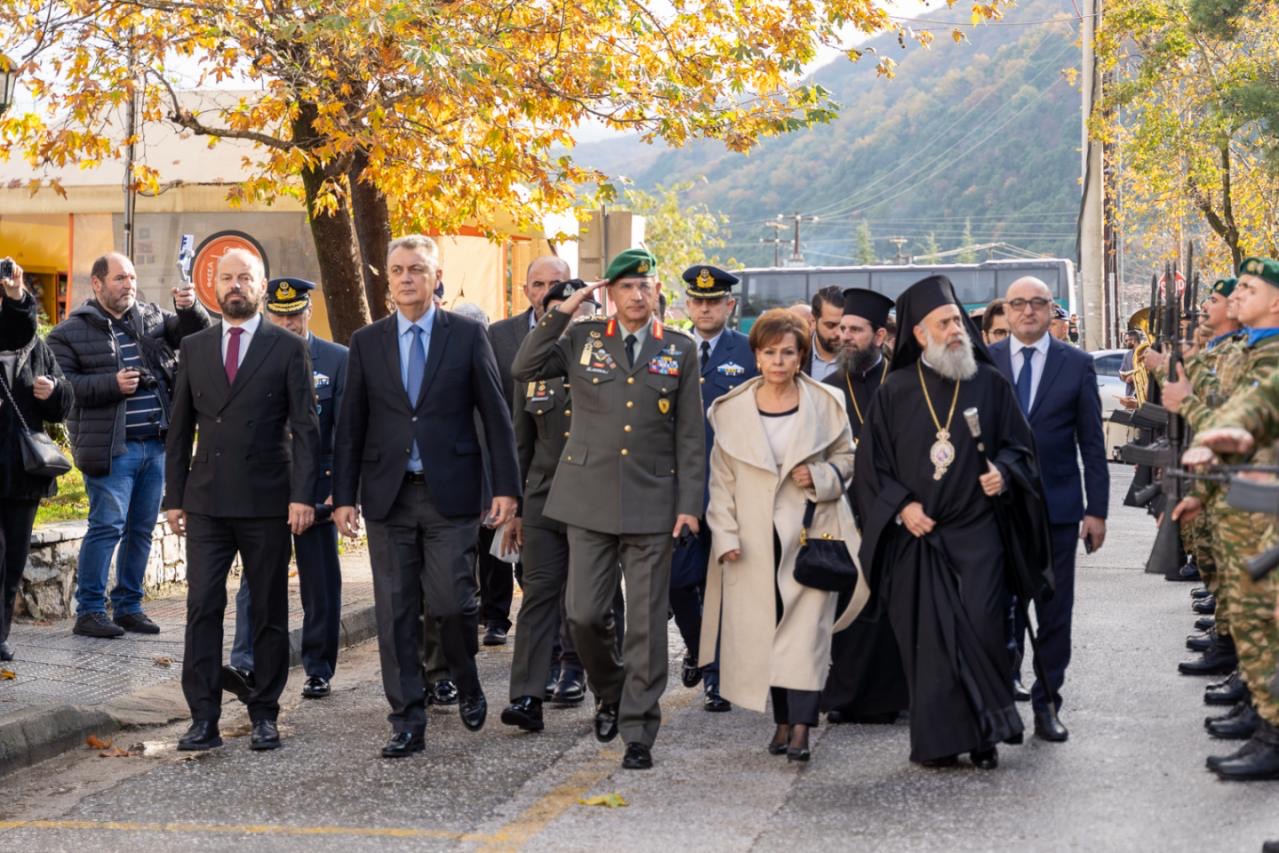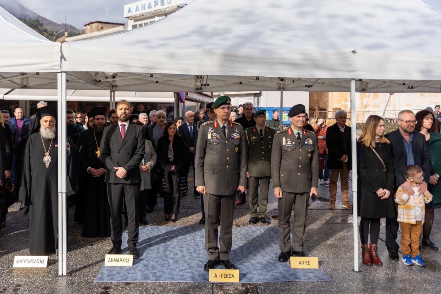 Στεφάνια προς τιμήν του Συνταγματάρχη Πεζικού κ.Γεωργίου Βούλγαρη κατέθεσαν, ο Αρχηγός ΓΕΕΘΑ Στρατηγός κ.Δημήτριος Χούπης και ο Δήμαρχος Μουζακίου.